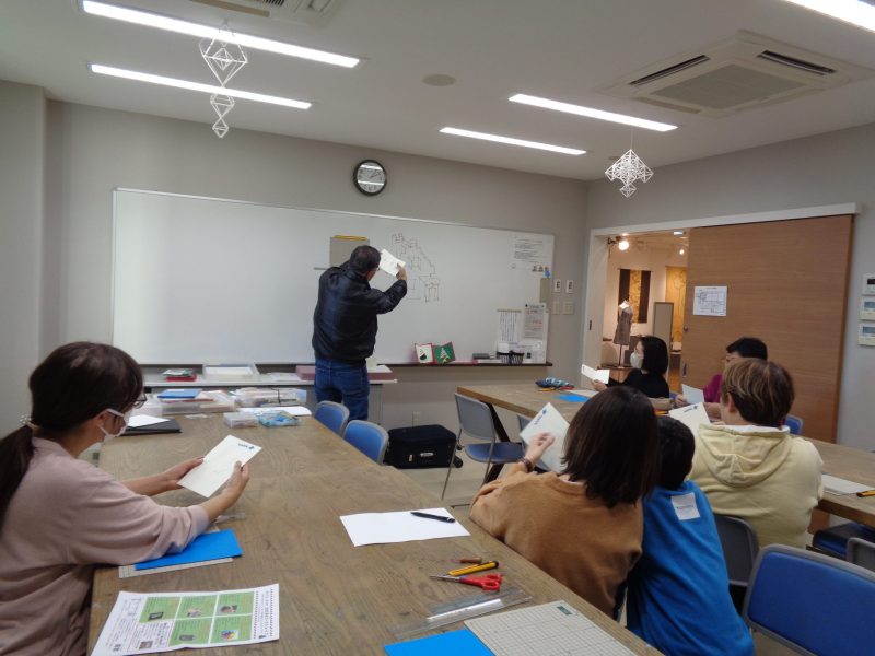 見附市出身の建築技師でオリガミ建築家木原隆明さんから、クリスマスツリーやおうちの形のポップアップカードを学びました。