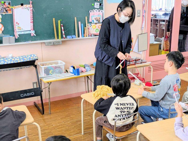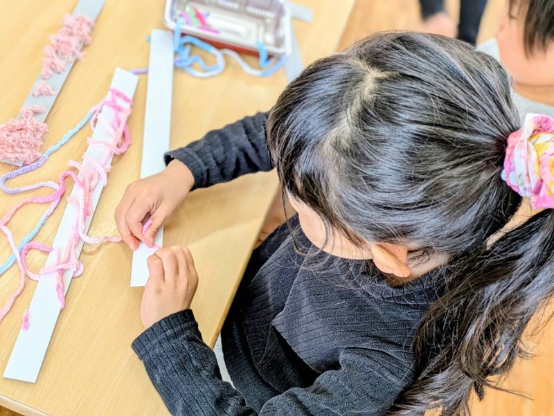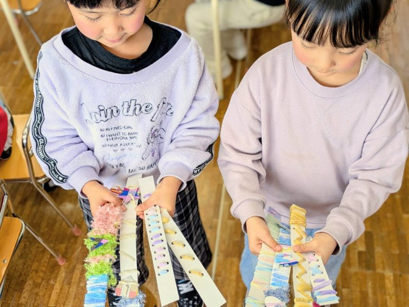 みなさん、様々な糸や毛糸やパーツを自分で選んで、工夫して1時間以上集中して制作しました。