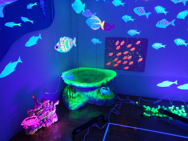 展示室2の様子 ブラックライトを使用した会員の共同制作